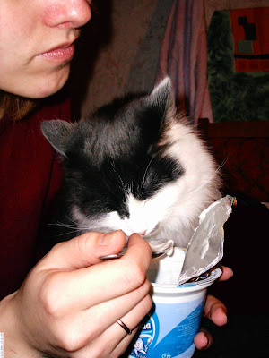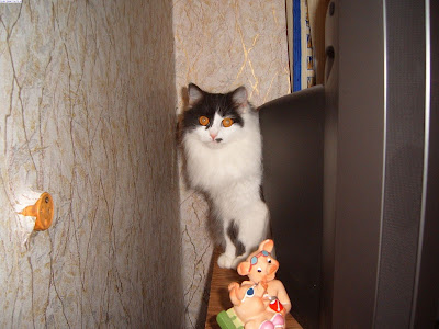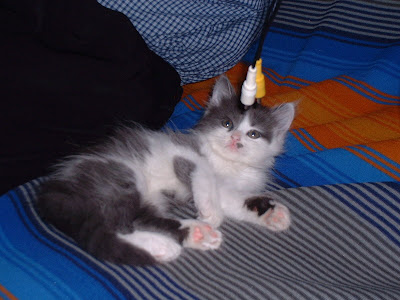 Ну так вот. Попали мы на день рождения. А там одна девушка решила подарить имениннице котенка. Кошечку. Назвали её Мася. Все с неё так умилялись, что друг Леша ненашел ничего лучшего придумать, как выпросить у хозяйки еще одного котенка и подарить нам. Вот так у нас появилось вредное, но ласковое и любознательное создание: Ася. Назвал её я ICQ, наверное потому что Skype как то более мужское имя :-) Причем кошка родилась 7го мая в профессиональный праздник радиофизиков.